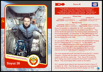 Oh... looks like I left out a word. I will fix it on my master copy. I try and catch the typos but some seem to slip through. Nice catch.Here is the next batch, hope you like them. This gets the set through 1974. #74 Salyut 3  #75 Soyuz 14  #76 Soyuz 15  #77 Soyuz 16  #78 Salyut 4  Thanks for looking!!! |