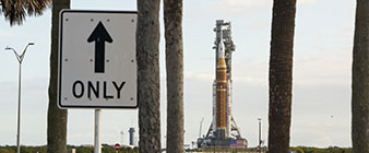 : For the first time in 57 years, a rocket that will carry astronauts to the moon stands atop Launch Pad 39B at NASA's Kennedy Space Center in Florida. Like Apollo 10 before them, the Artemis II crew will not land on the lunar surface, but rather rehearse activities and test their spacecraft systems in preparation for the next mission to touch down. Before they launch, the Space Launch System rocket will undergo a fueling test.
