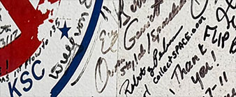 : The Pima Air & Space Museum in Tucson, Arizona now has the crew module access tunnel that led into and out of the space shuttle orbiters while in the second of three servicing hangars at the Kennedy Space Center in Florida. For the final few years it was in service, the tunnel also became a "sign in" book of sorts, with astronauts, technicians, engineers, members of the press and guests autographing every inch of its walls.