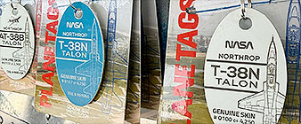 : Two "White Rockets," one that helped NASA open up the skies and another that prepared astronauts to soar into space, have arrived at the same end — as MotoArt PlaneTags. Cut into luggage ID tag-inspired ovals, the metal skins from the research-used N864NA and training-flown N910NA T-38 jets have become collectibles. Together 864 and 910 represent the history of the Northrop T-38 at the National Aeronautics and Space Administration.
