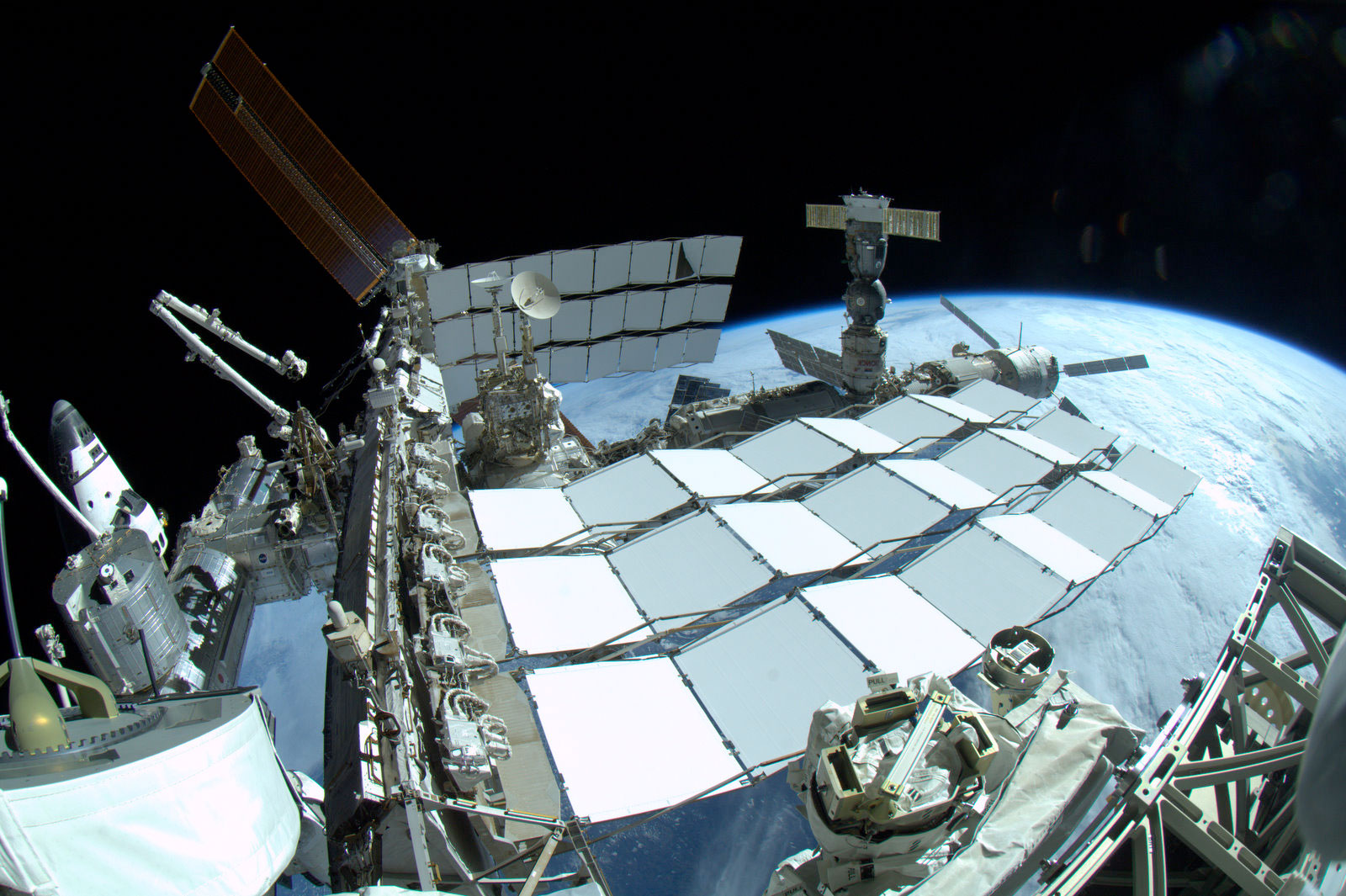 Greg Chamitoff's wide-angle photo taken from atop the station. Click to enlarge.