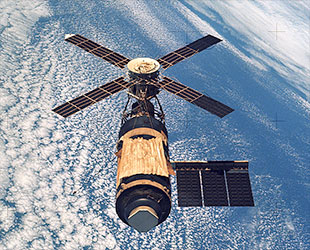 The United States' Skylab orbital workshop in Earth orbit. (NASA) |