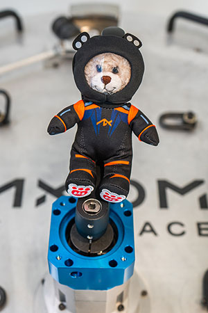GiGi, Axiom's spacesuit-clad Build-A-Bear, returning to orbit on Ax-3
