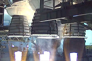 The sight of the hot fire, even as brief as it was, evoked comparisons to the tests of the Apollo-era Saturn V S-IC first stage, which was outfitted with five F-1 engines, the most powerful single-combustion chamber engines ever built and flown. Before NASA launched its Apollo missions to the moon, it conducted numerous hot fire tests with a test article and then with the first production (flight) S-IC stage.
