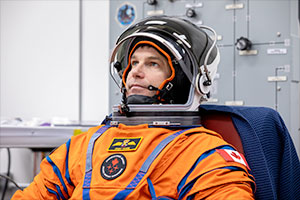 Canadian Space Agency astronaut Jeremy Hansen seen suited up during a dress rehearsal for the Artemis II launch. Hansen will be the first Canadian to leave Earth orbit and fly to the moon. (NASA) |
