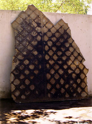 In 2000, Richard Sheppard rediscovered the metal his father had first located, years earler. It was now being used as the roof of a washroom. Here, Sheppard inspects the metal. (Richard Sheppard) |