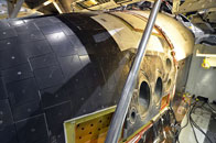 As preparation work continues, NASA recently invited members of the media — including collectSPACE — to tour inside and around Endeavour. The photographs below begin at the nose of the orbiter and proceed through its hatch onto the mid deck and up on the flight deck. The photos then show the view under the orbiter and above the payload bay. The virtual tour ends at the aft of the vehicle with the openings for Endeavour's three main engines.