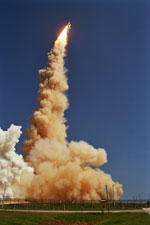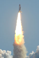With those words by NASA spokesman George Diller, the crew of STS-114 launched at 9:39 a.m. CDT from Launch Pad 39-B at Kennedy Space Center.
