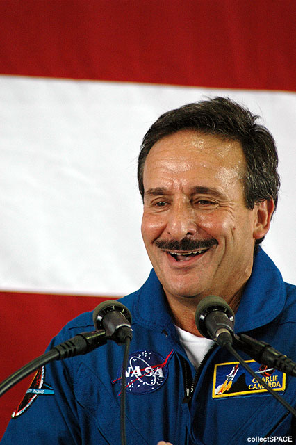 Each of the crew members took a turn at the podium to express their happiness with the mission and dedicated belief in NASA's continued reach into space.