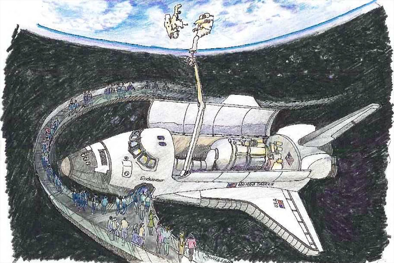 NASA has set aside Discovery for the Smithsonian but the retirement homes for Atlantis and Endeavour, as well as the soon-to-be-displaced Enterprise, won't be known until the NASA Administrator makes his announcement next month. In the interim, some of the 21 organizations vying for an orbiter have released concepts showing how they plan to exhibit a retired shuttle, should they receive one.