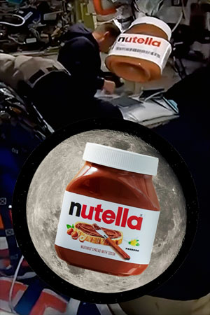 A well-timed cameo by a jar of Nutella on board NASA's Artemis II Orion spacecraft at the moon grabbed the attention of the public and the brand's marketing team. (NASA/Ferrero / collectSPACE)