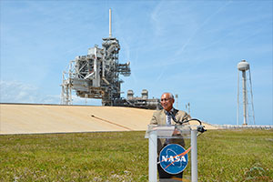 NASA Administrator Charles Bolden addresses the media about the lease of Launch Complex 39A to SpaceX. (collectSPACE)
