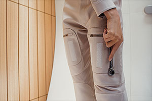 Worn as either a one- or two-piece garment by zipping (or unzipping) the jacket from the pants, the flight suit will be tailored to each crew member while also offering increased comfort and mobility through the inclusion of back vents and shoulder gussets. The suit also has pockets and hook-and-loop fasteners (Velcro) so tools can be easily stowed and retrieved.
