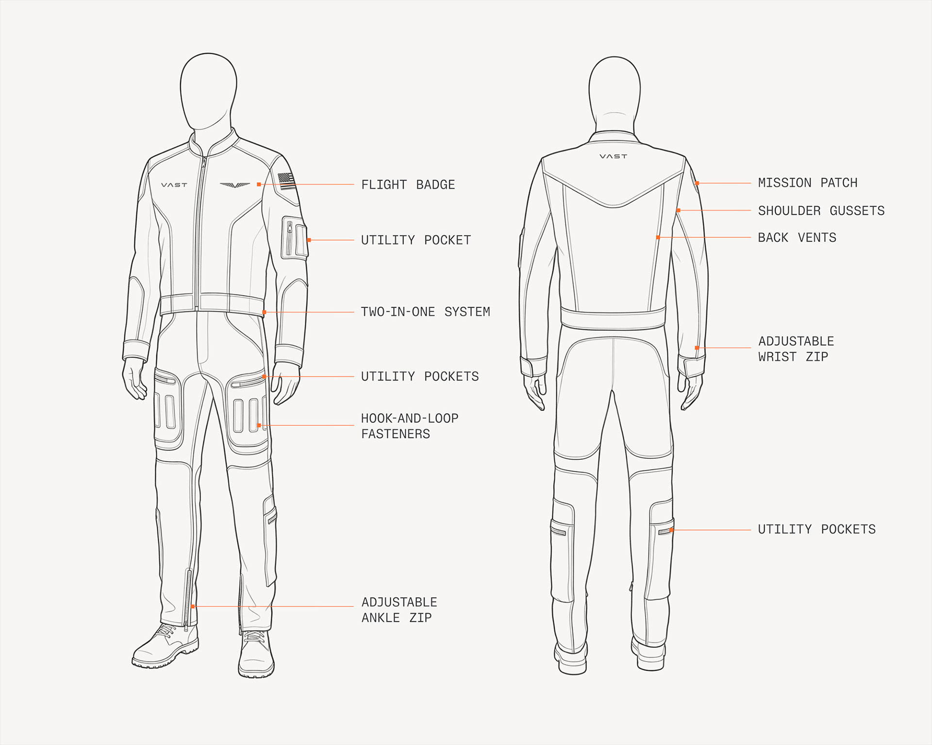 The Vast Astronaut Flight Suit was developed with the company's clients in mind, from its fit to its features.