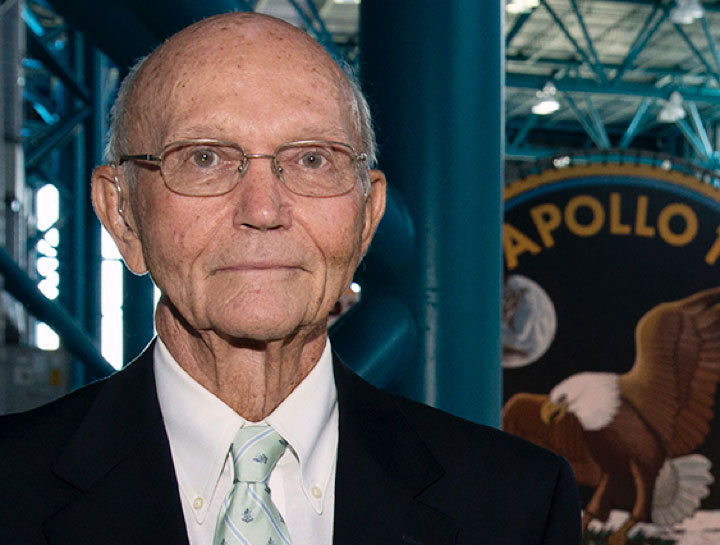Apollo 11 astronaut Michael Collins at the Apollo/Saturn V Center at NASA's Kennedy Space Center in Florida. (Kat Vinson) |