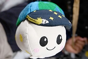 The collectible plush reproduces Rise's blue and green cap, as well as the rocket ship design and star field on its bill. The latter is intended to form the constellation Orion, a nod to the Orion spacecraft on which the Artemis II astronauts tested on their 10-day flight to the moon and back.
