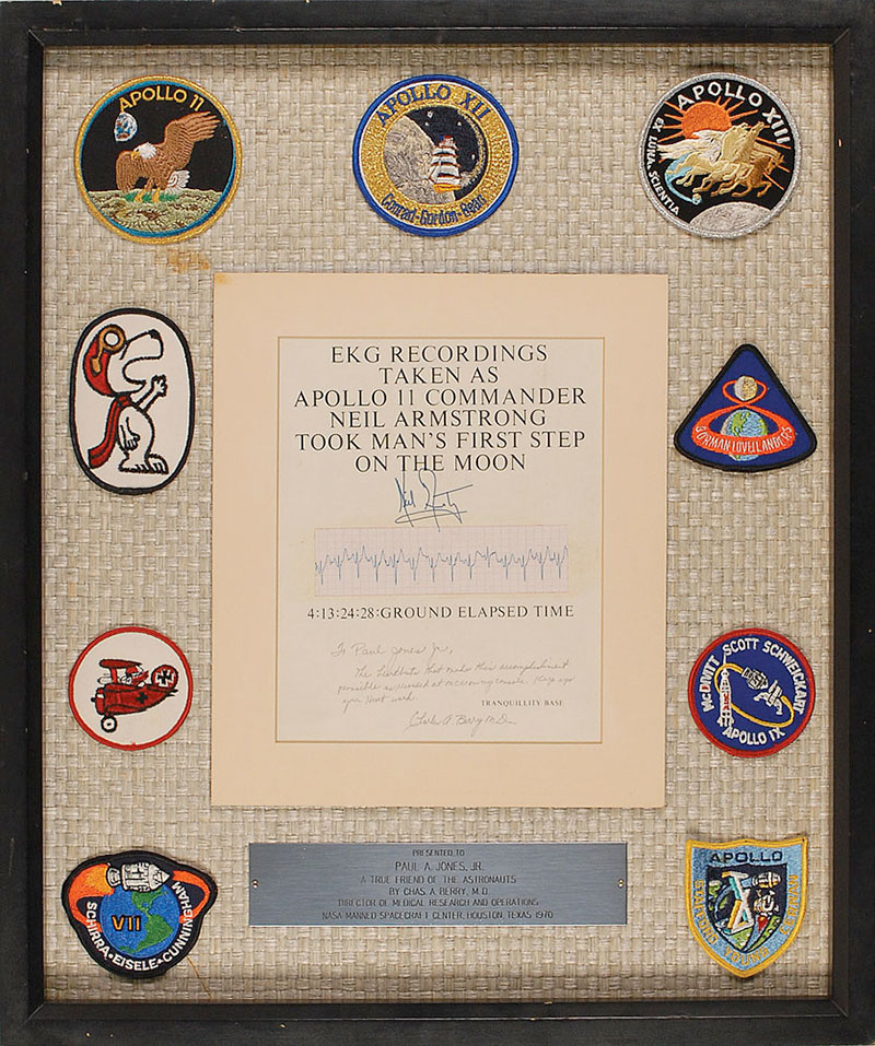 The six-inch long paper record of Armstrong's heartbeat at the moment of his historic "giant leap for all mankind" was retained by NASA's medical administration manager after the mission, cut into five pieces and then presented to the members of his medical team.