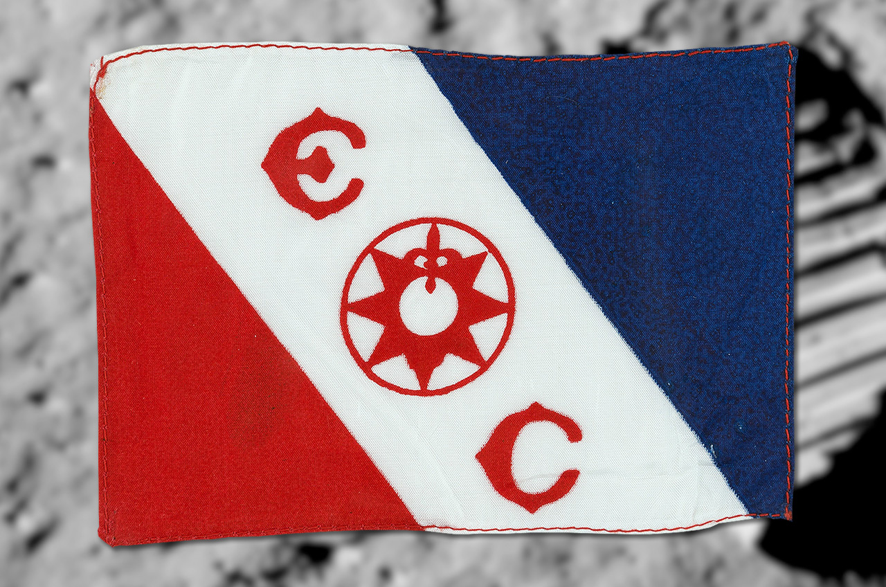 The Explorers Club flag that Neil Armstrong flew to the surface of the moon on the Apollo 11 mission in July 1969. (Heritage) |
