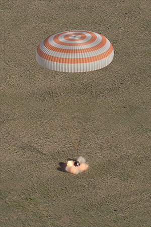 The spacecraft was met on the ground by a recovery team led by Russian forces and joined by NASA and Japanese medical personnel to assist Shkaplerov, Kanai and Tingle as they began their readjustment to gravity.