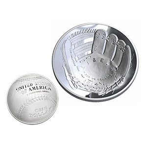 The Mint issued its first curved coin to commemorate the 75th anniversary of the National Baseball Hall of Fame in 2014.