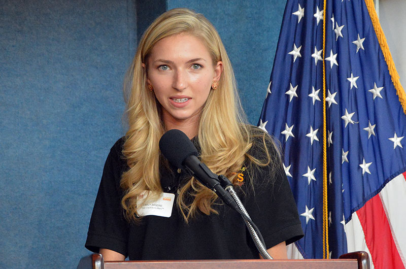Time Capsule to Mars founder and mission director Emily Briere speaks at the National Press Club, June 23, 2014. (collectSPACE) |