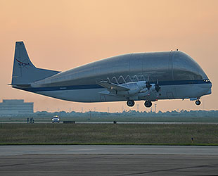 Astronaut Greg C. Johnson, together with NASA pilot Dick Clark, left Ellington Field in Houston on board the Super Guppy, a wide-bodied turboprop aircraft previously used to deliver the room-size modules of the International Space Station to their Florida launch site.