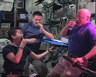 The three saved a few leaves for their Russian cosmonaut crewmates, two of whom were out on a spacewalk.