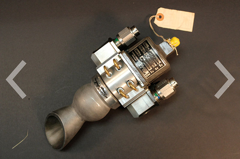 A reaction control system thruster as was allegedly found in the Walt Disney Archives as part of a collection of artifacts. (Disney) |