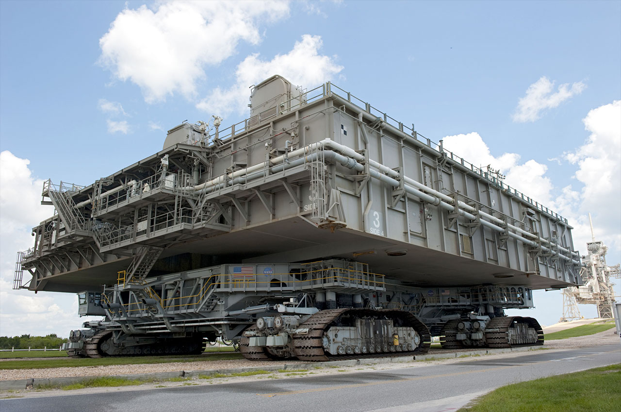 With the introduction of the space shuttle in the 1980s, the mobile launch platforms (MLP) were converted to support the winged orbiters. For three decades, the MLPs moved the shuttles between the Vehicle Assembly Building and Launch Pads 39A and 39B, as well as served as the base from where the orbiters soared spaceward.