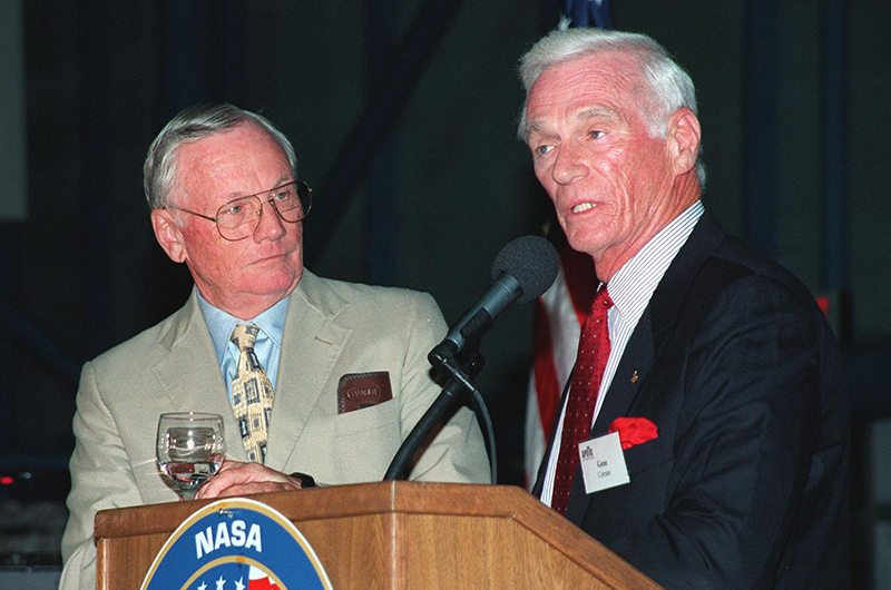 The first and last — Neil Armstrong (Left), the first man on the moon, is seen with Eugene Cernan, the last man to stand on the lunar surface. In the years leading up to his death, Armstrong, together with Cernan, had testified before Congress urging for a return to the moon by American astronauts.