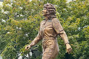 Artist Benjamin Victor sculpted "Teacher in Space" Christa McAuliffe smiling and striding forward, as she looked when she headed out for the launch pad and space shuttle Challenger on Jan. 28, 1986. (John Tylko) |