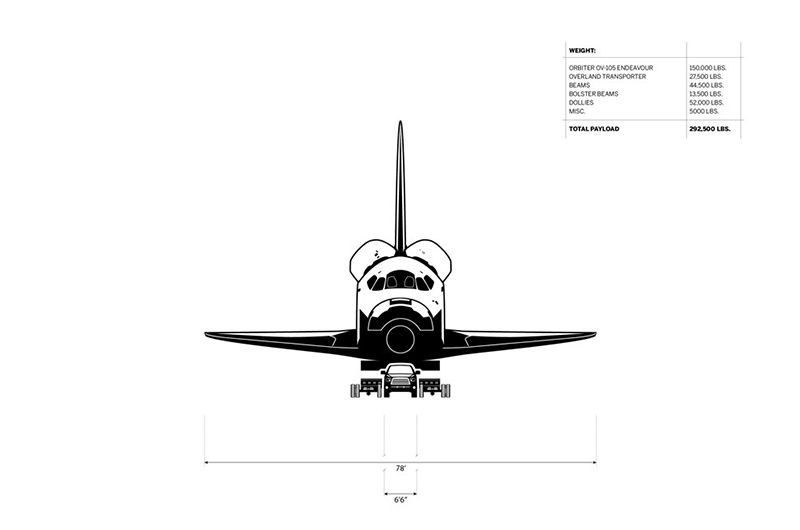Once on the ground at LAX, Endeavour will be hoisted off its carrier aircraft and then lowered onto a modified NASA overland transporter originally used to move the shuttles from their Palmdale, Calif. assembly plant to the nearby air force base where they were mounted atop the SCA and flown to Florida to be launched.