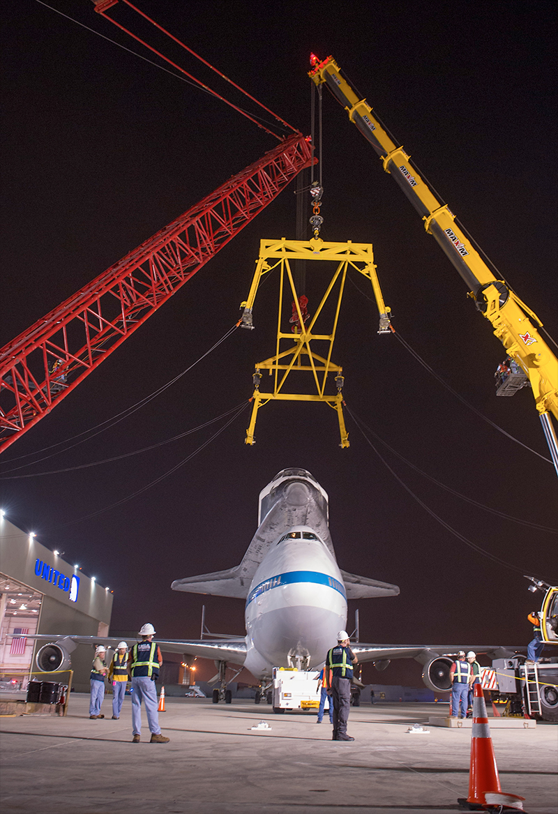 Shuttle Endeavour hoisted off jet for road trip to L.A. museum