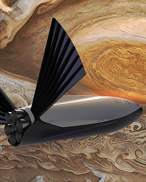Artist rendition of SpaceX's ITS spaceship at Jupiter. (SpaceX)