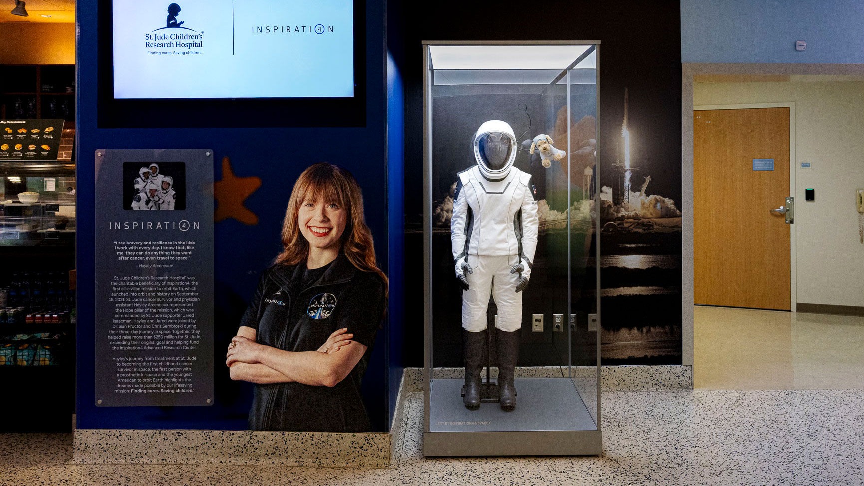 St. Jude Children's Research Hospital has put on display an exhibit dedicated to its former patient and current physician's assistant Hayley Arceneaux, who wore the pressure suit into space on Inspiration4, the first all-civilian privately-funded orbital mission in 2021. (St Jude/ALSAC) |