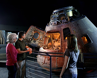 The Apollo 17 command module is among the space artifacts on loan to Space Center Houston by the Smithsonian. (SCH) |