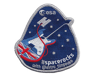 The exclusive #spacerocks patch that winners will receive was produced for ESA by Lucreation in the Netherlands. The embroidered badge depicts an electric guitar, bearing the Union flag, with its lead originating from the station.