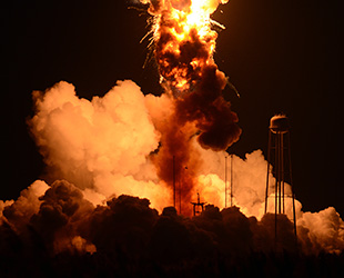 October 29, 2014 — An Orbital Sciences' Antares rocket carrying a commercial unmanned cargo spacecraft bound for the International Space Station exploded just seconds after launching from the Wallops Flight Facility in Virginia on Tuesday evening (Oct. 28).