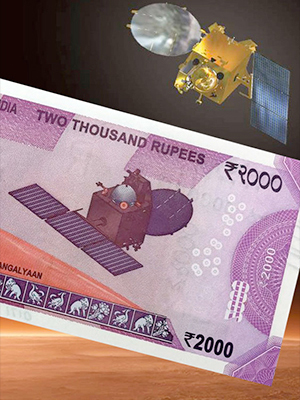 November 9, 2016 — Three years (and five days) after it was launched to circle Mars, India's first interplanetary probe is now entering circulation on the back side of the country's new banknote.