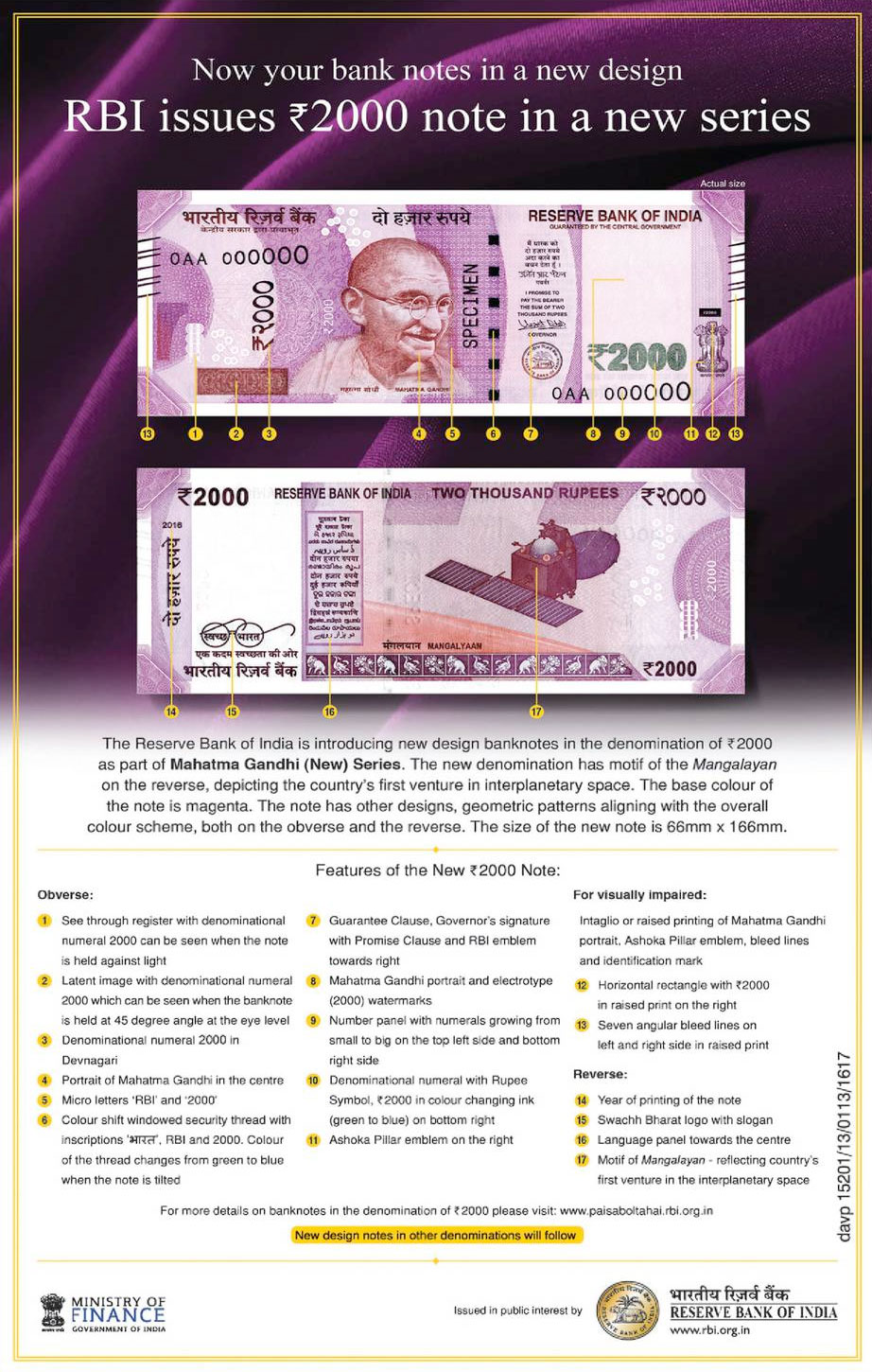 Reserve Bank of India flier promoting the release of the new 2000 rupee banknote featuring Mangalyaan. (Reserve Bank of India) |