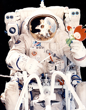 Serebrov served as president of the the All-Russian Youth Aerospace Society (VAKO) "Soyuz," the first scientific-educational youth society in Russia, and led the Young Cosmonauts educational organization. During his first stay on Mir, Serebrov became the first space traveler to deliver educational lessons from space, dedicating the last of his sessions to the memory of teacher Christa McAuliffe and the fallen STS-51L Challenger crew. |
