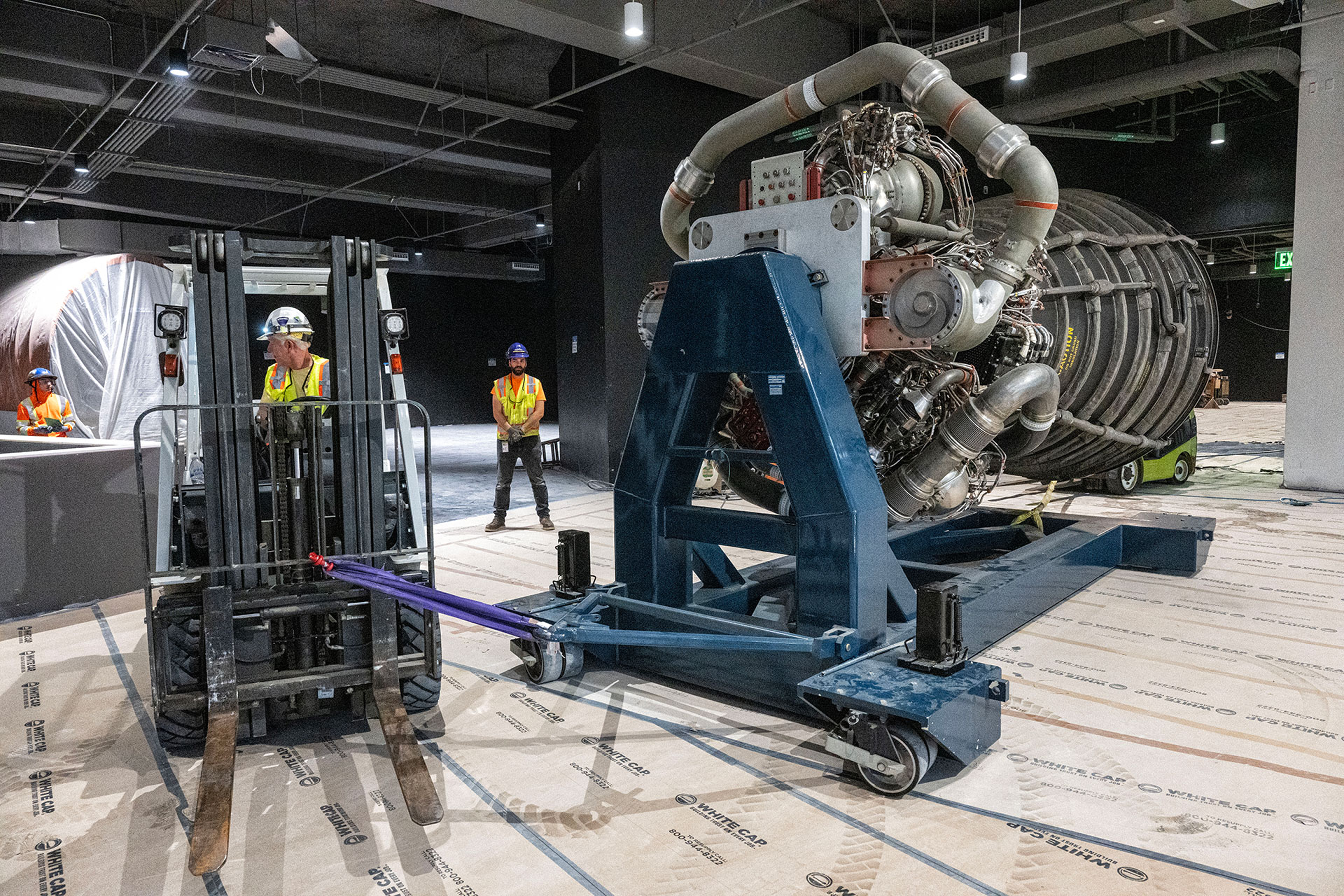 Now in place are a space shuttle main engine (SSME), a walkthrough segment of a shuttle solid rocket booster and a Rocket Lab Electron rocket.