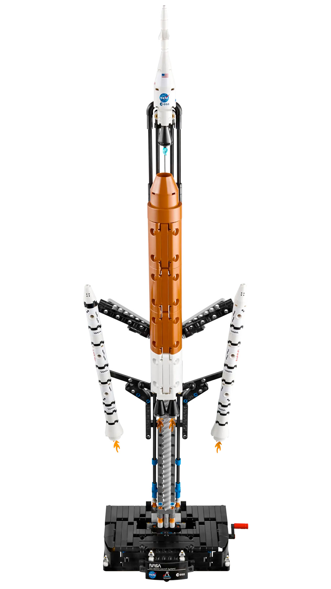 "The educational LEGO Technic set shows the moment a rocket launches, in three distinct stages," reads the product description on LEGO's website. "Turn the crank to see the solid rocket boosters separate from the core stage, which then also detaches. Continue turning to watch the upper stage with its engine module, Orion spacecraft and launch abort system separate."