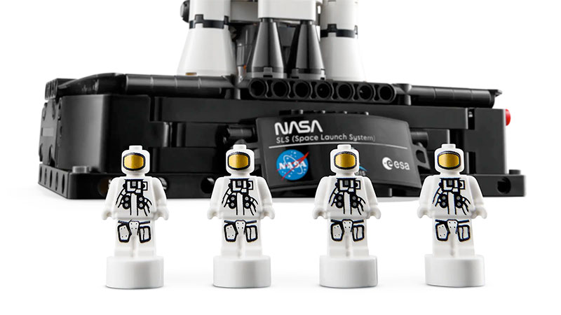The LEGO Technic NASA Artemis Space Launch System Rocket also includes nanoscale astronauts representing the Orion spacecraft crew. (LEGO) |