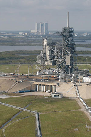 Aerial view of Launch Pad 39A at NASA's Kennedy Space Center in Florida. NASA has chosen SpaceX to negotiate a lease for use of the historic complex to launch the company's rockets. (NASA)