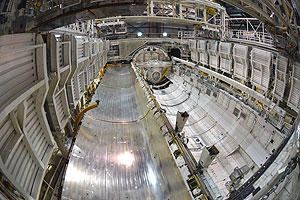 Discovery is targeted to make one last flight in April 2012, though not under its own power and well within the atmosphere. Ferried atop NASA's modified Boeing 747 carrier aircraft, the shuttle will be flown to Dulles Airport in Virginia. There it will be unloaded by cranes and rolled into the Udvar-Hazy's James S. McDonnell Space Hangar as its centerpiece attraction.