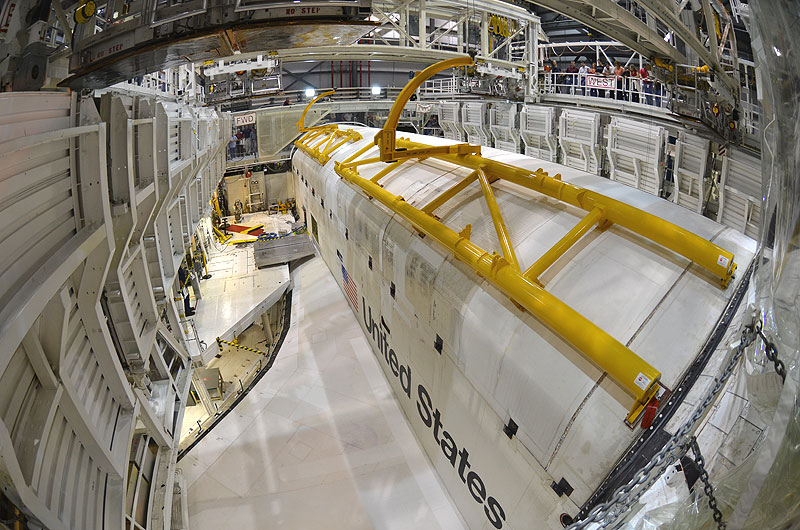Discovery's cargo hold — which carried to orbit the Hubble Space Telescope and Ulysses solar probe along with modules for the International Space Station and more than a dozen satellites — was closed for what may be its last time. The Smithsonian plans to display the shuttle with its bay doors shut, at least initially.