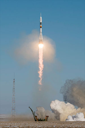 Soyuz MS-07 launches for the International Space Station from the Baikonur Cosmodrome on Dec. 17, 2017. (NASA/Joel Kowsky)