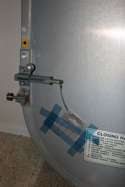 While on a recent trip to Huntsville Alabama, allocated a couple of hours to rummaging through some local scrap/surplus shops and picked up this fairly complete ISS hatch designed for the Quest Airlock as well as the Destiny and Unity modules. Below images show the recovered hatch as well as onboard application. It is missing only the central pressure indicator/view port assembly (anybody got a spare laying around?)
