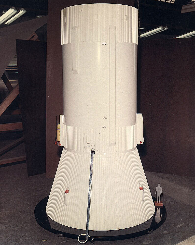 Also note that the opposite APS does not show the detail as this one does. I think it was a white plastic part and this side had a clear cover over it showing the internals. The issue is the engines and location of those engines on the model as it compares to the actual APS as flown. It appears that the model has what I call the "small" engine higher up on the center line and there is a "large" engine in the base as well. The schematic and pictures show that engine to be lower on the APS. Also I can not see a large engine in the base of any of the photos.